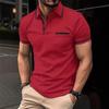 Мужская одежда Летняя Повседневная Футболка-поло с коротким рукавом и лацканами для гольфа, Топы с прострочкой и карманом