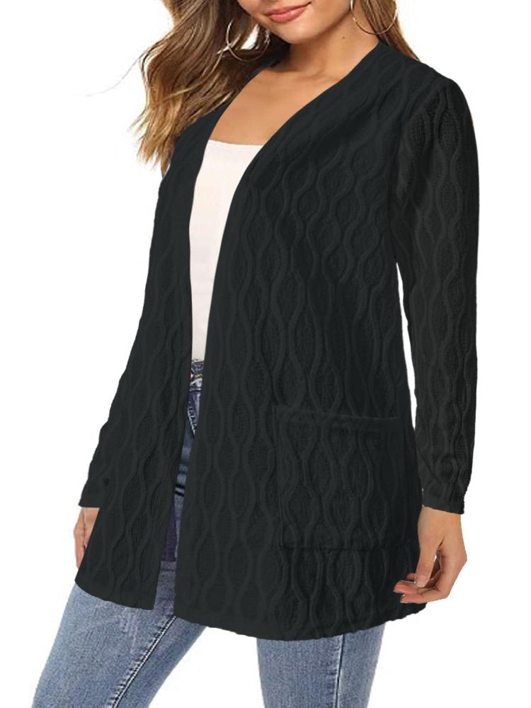 Осень и зима полый однотонный домашний повседневный темпераментный кардиган на пуговицах с длинным рукавом вязаный жакет женская одежда