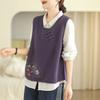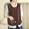 Женский вязаный жилет с культурной застежкой-пуговицей и вышивкой, новинка весны и осени, свитер-жилет с круглым вырезом — купить товар онлайн с бесплатной доставкой до всему миру!
