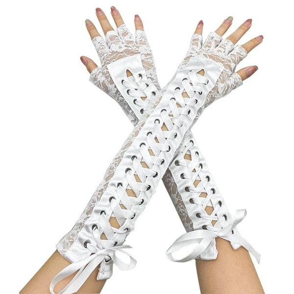 Женская мода Длинные ленты Завязки Готические митенки Ночной клуб Кружевные перчатки Наряд Танцевальное выступление Панк перчатки