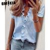 GMXIA Женские модные повседневные однотонные блузки и рубашки с короткими рукавами и v-образным вырезом с принтом — купить товар онлайн с бесплатной доставкой по всему миру!