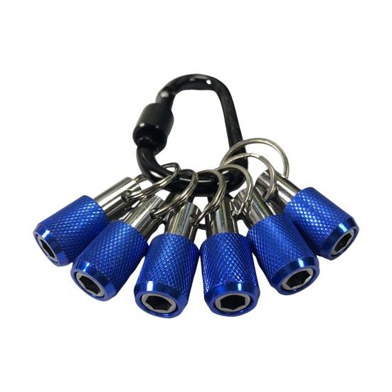 В комплект поставки входят 6 удлинительных стержней для держателей бит с шестигранной отверткой и 1 карабин для удобства переноски.. Просто потянув назад внешнее металлическое кольцо, вы можете легко снять и заменить сверла, что делает ваши задачи более эффективными и простыми.. Оставайтесь организованными и эффективными с помощью брелока с держателем бит.