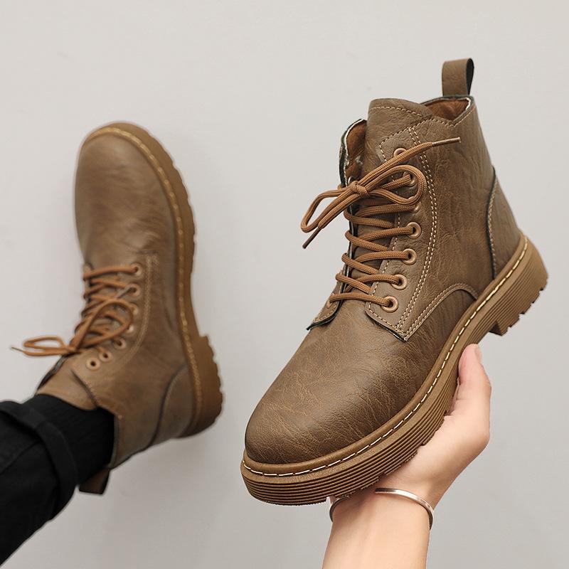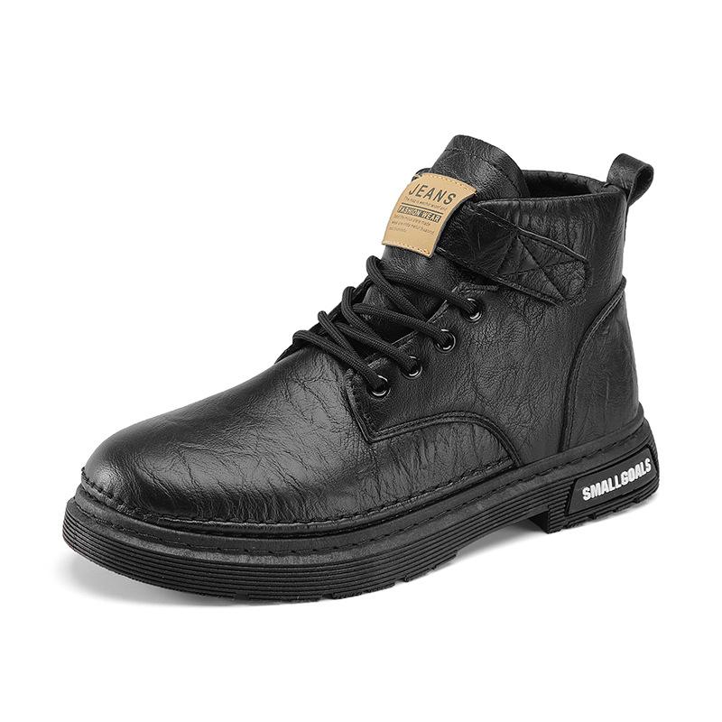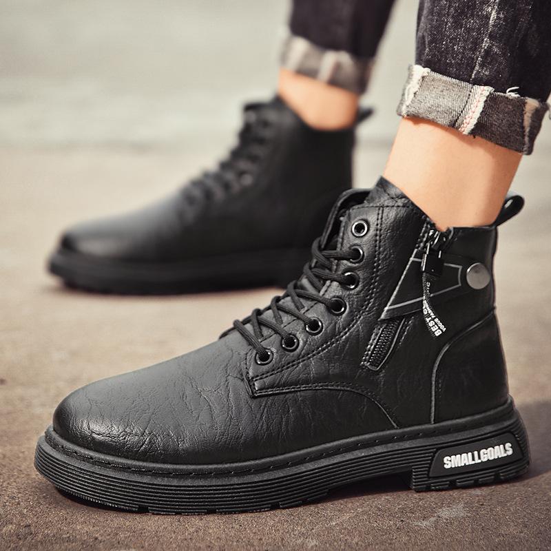 Осень и Зима Высокие Черные Ботинки Мартин Ретро Кожа Модные Повседневные Ботинки Уличная Рабочая Обувь