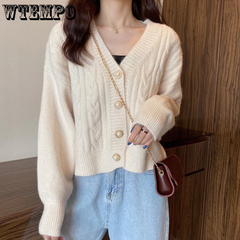 Женский короткий вязаный кардиган свитер с V-образным вырезом женское пальто весна и осень однотонный свитер
