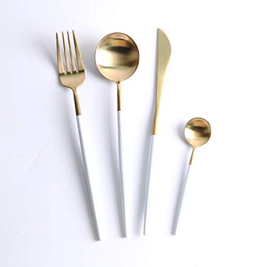 Набор столовых приборов Minky Столовые приборы Золото Стильная посуда Нержавеющая сталь Набор столовых приборов для ужина Нож Ложка Вилка Набор Нож для стейка Столовый нож Десертная ложка Паста