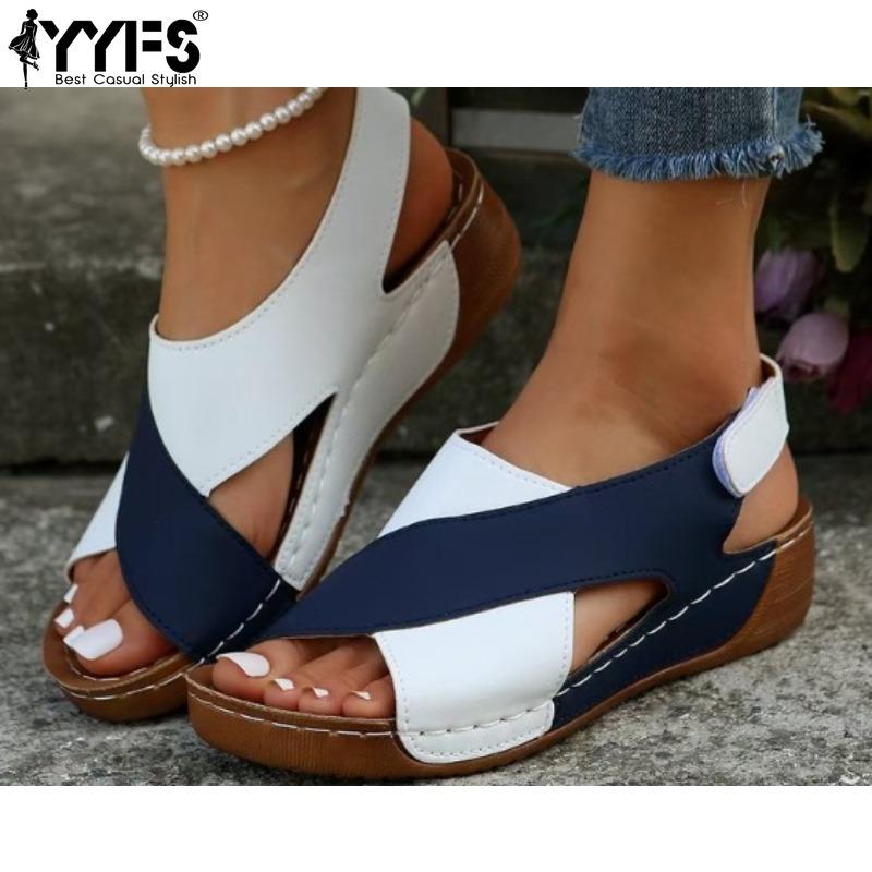 Женские сандалии на танкетке контрастного цвета с открытым носком, обувь на мягкой подошве, удобные летние сандалии для улицы