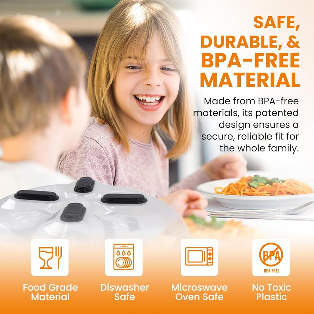 БЕЗОПАСНЫЙ, ПРОЧНЫЙ И НЕ СОДЕРЖАЩИЙ БФА МАТЕРИАЛ – Изготовленный из материалов, не содержащих БФА, этот защитный экран от брызг для микроволновой печи выдерживает температуры до 300°F. Полностью протестировано на соответствие стандартам безопасности, его запатентованная конструкция обеспечивает надежную посадку при каждом использовании.. Безопасный для всей семьи, это идеальное решение для защиты продуктов в вашей микроволновой печи.