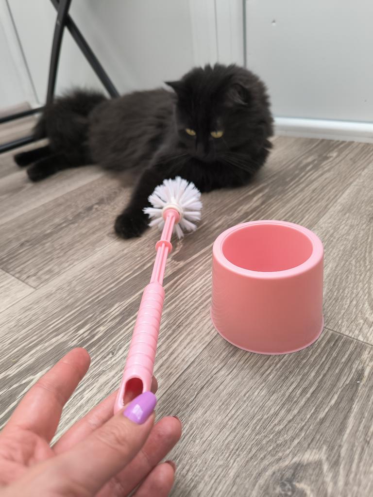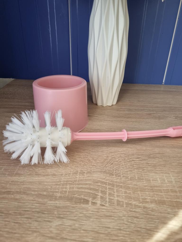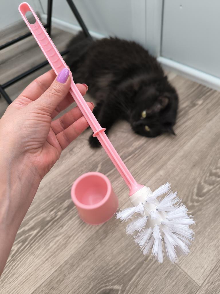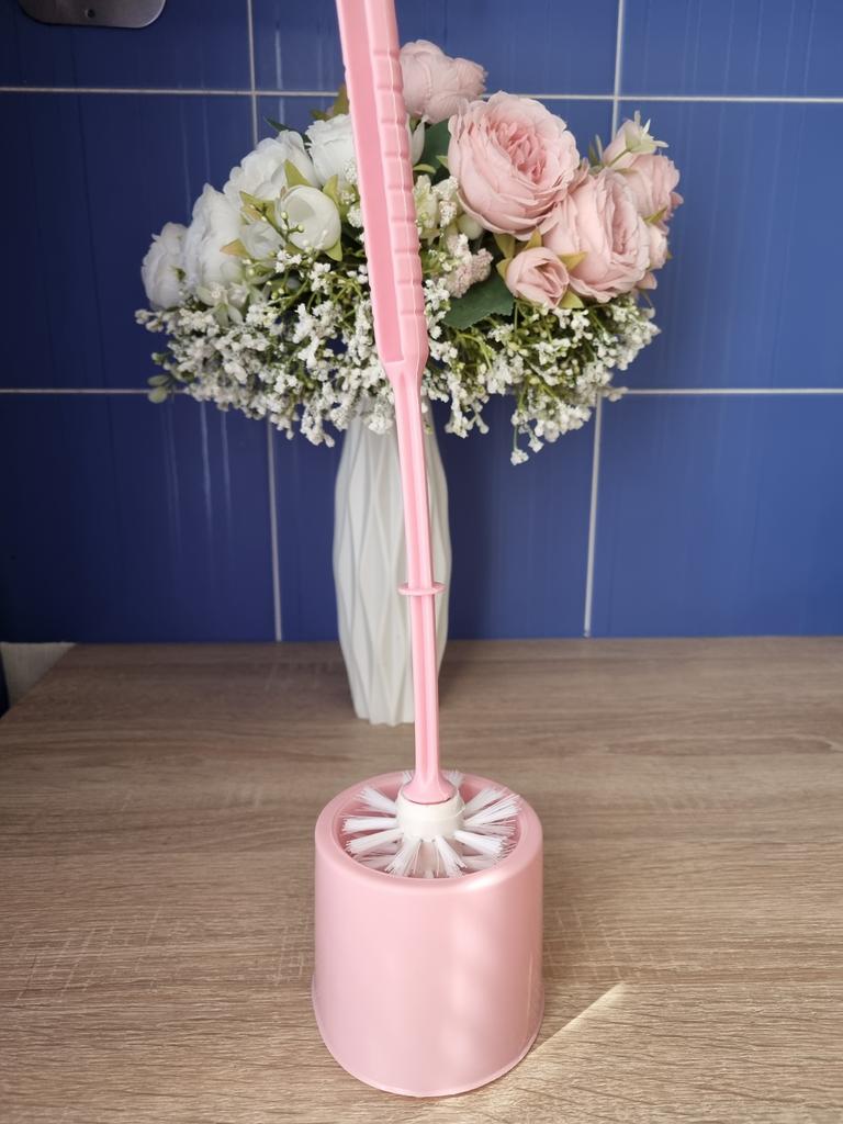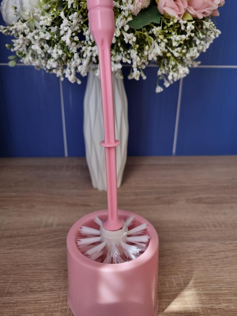 ❤️👍Ёршик для унитаза Купила розовый ёршик для унитаза — простая, но нужная в быту вещь. Щётка лёгкая, пластиковая, ручка тонкая, удобно держать в руке. Щетина средней жёсткости, хорошо очищает внутренние стенки унитаза, достаёт даже в труднодоступные места. Подставка компактная, не занимает много места возле унитаза и легко моется. По качеству — пластик не самый плотный, поэтому сильно давить не стоит, чтобы не погнуть ручку. Но для регулярной уборки подходит отлично. Цвет розовый, приятный, вносит немного цвета в ванную комнату. Запахов не впитывает, после промывки быстро сохнет. В целом, недорогой, лёгкий и аккуратный ёршик, который справляется со своей задачей, хотя для более интенсивной чистки, возможно, стоит выбрать модель с более прочной ручкой.