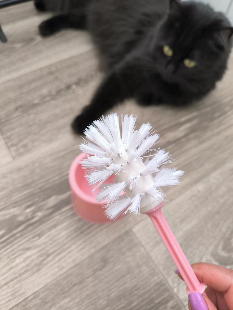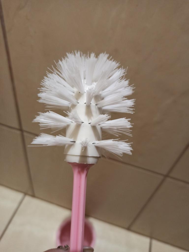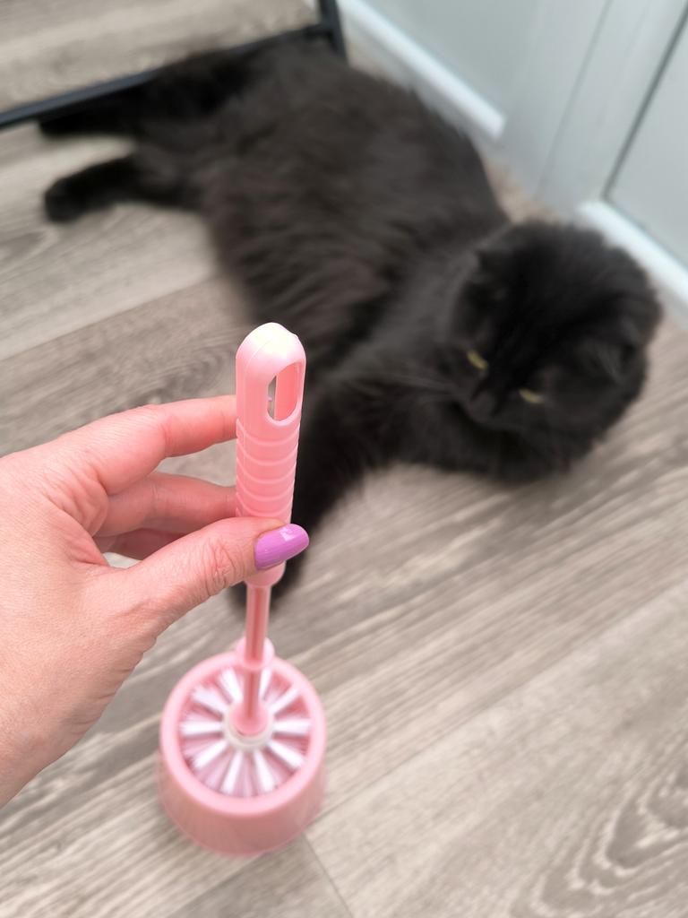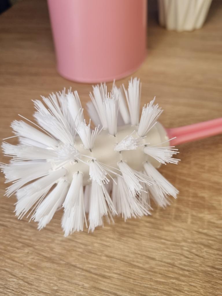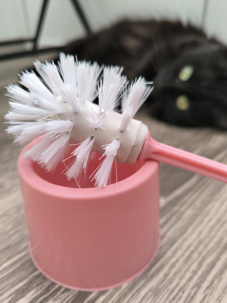 ❤️👍Ёршик для унитаза Купила розовый ёршик для унитаза — простая, но нужная в быту вещь. Щётка лёгкая, пластиковая, ручка тонкая, удобно держать в руке. Щетина средней жёсткости, хорошо очищает внутренние стенки унитаза, достаёт даже в труднодоступные места. Подставка компактная, не занимает много места возле унитаза и легко моется. По качеству — пластик не самый плотный, поэтому сильно давить не стоит, чтобы не погнуть ручку. Но для регулярной уборки подходит отлично. Цвет розовый, приятный, вносит немного цвета в ванную комнату. Запахов не впитывает, после промывки быстро сохнет. В целом, недорогой, лёгкий и аккуратный ёршик, который справляется со своей задачей, хотя для более интенсивной чистки, возможно, стоит выбрать модель с более прочной ручкой.
