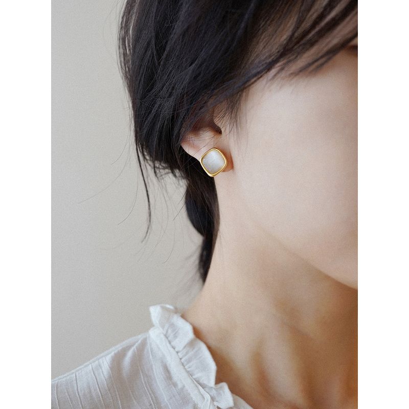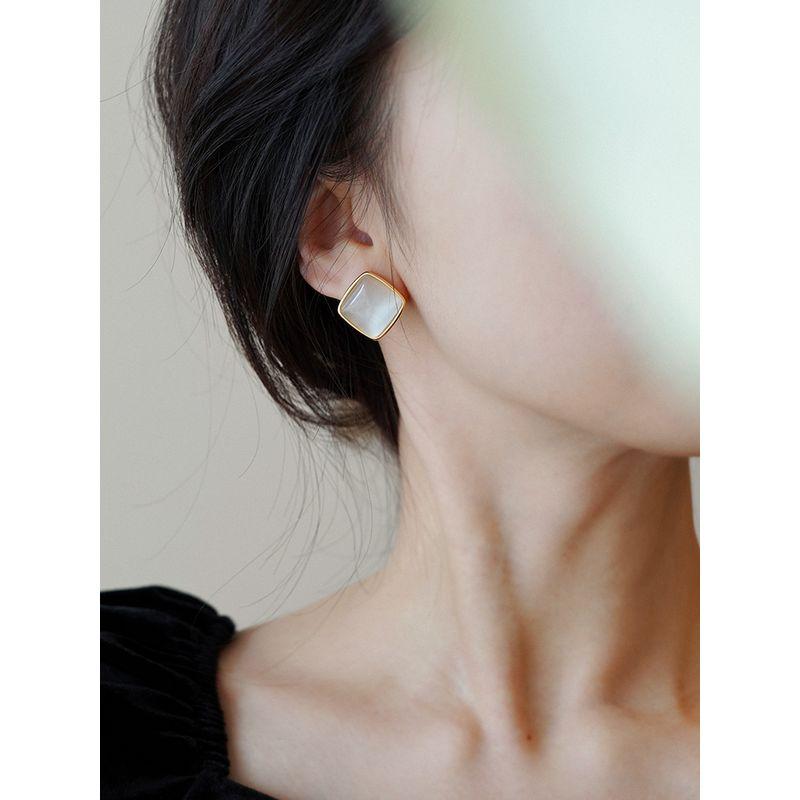 Elegant Geometric Square Ear Studs Autumn and Winter Opal