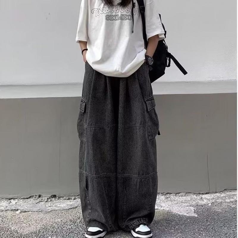 Мужские весенне-осенние красивые хип-хоп рабочие брюки, подростковые джинсы с заниженной талией, свободного кроя, в стиле ретро