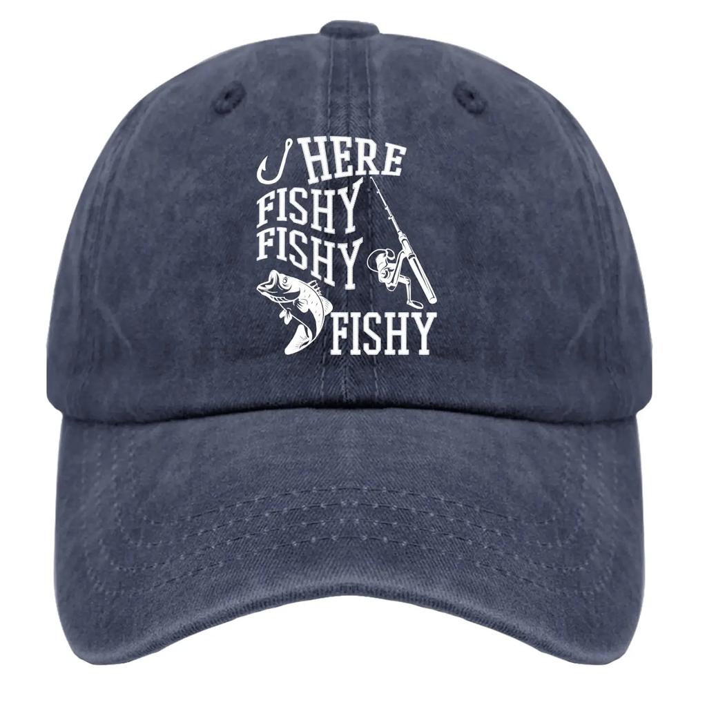 Шляпа Забавная Рыбалка Здесь Рыбка Рыбка Рыбка Папины Шляпы Винтажная Кепка для Мужчин