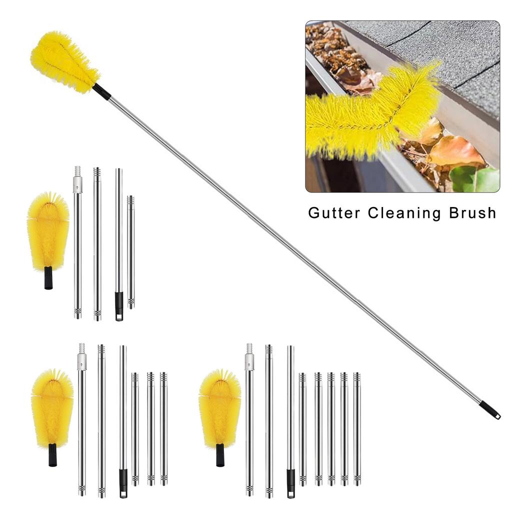 Многофункциональный телескопический инструмент для чистки водостоков с гибкой щеточной головкой, домашний аксессуар для удаления листьев и мусора