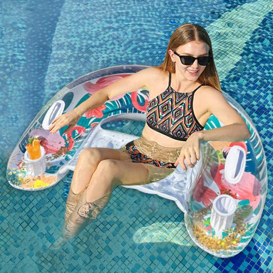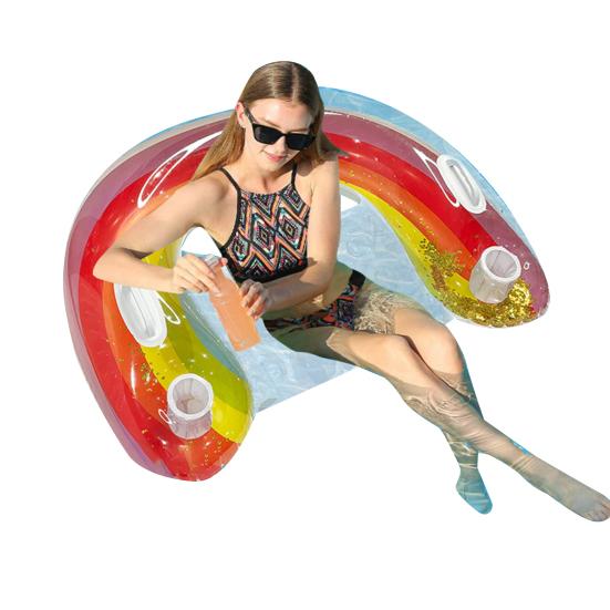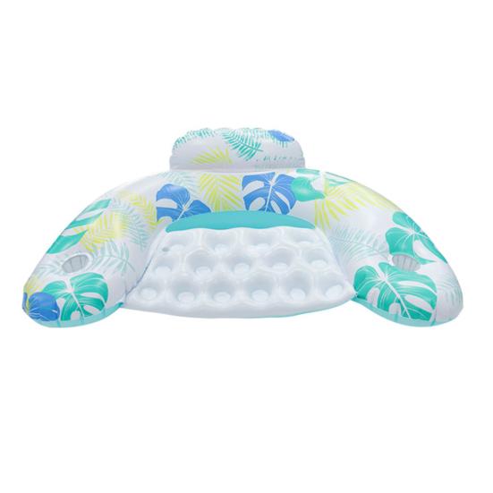 Удобный держатель для стакана: Оставайтесь свежими во время плавания с помощью встроенного подстаканника в этом надувном шезлонге. Потягивая любимый напиток, вы стильно отдыхаете на воде.