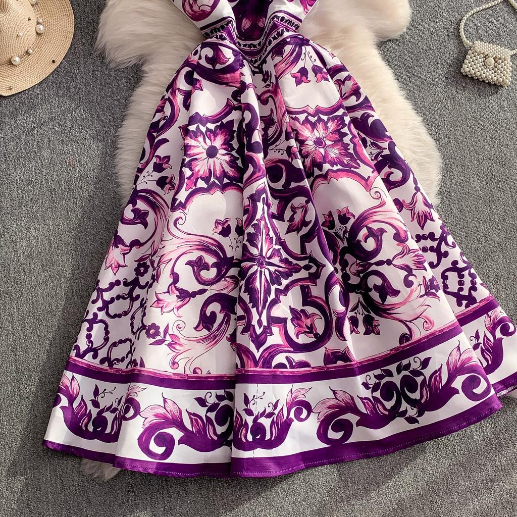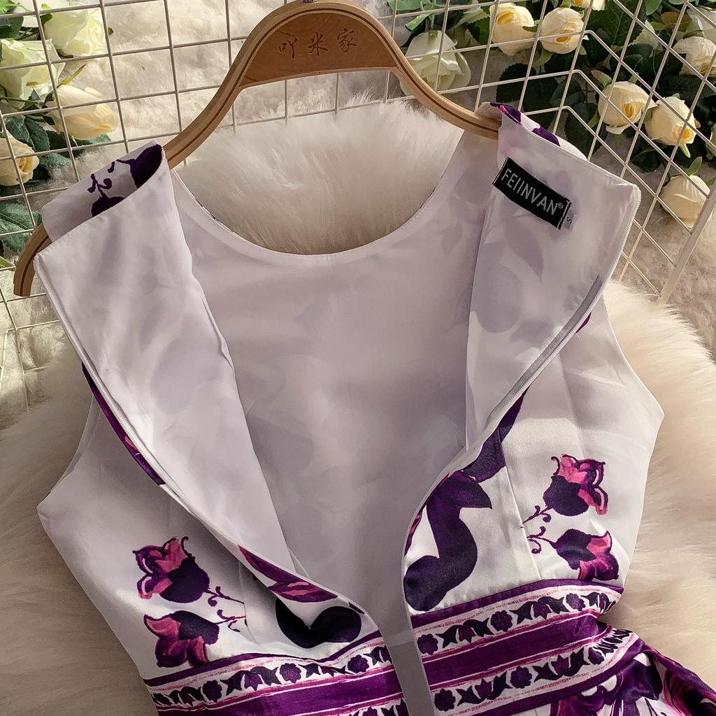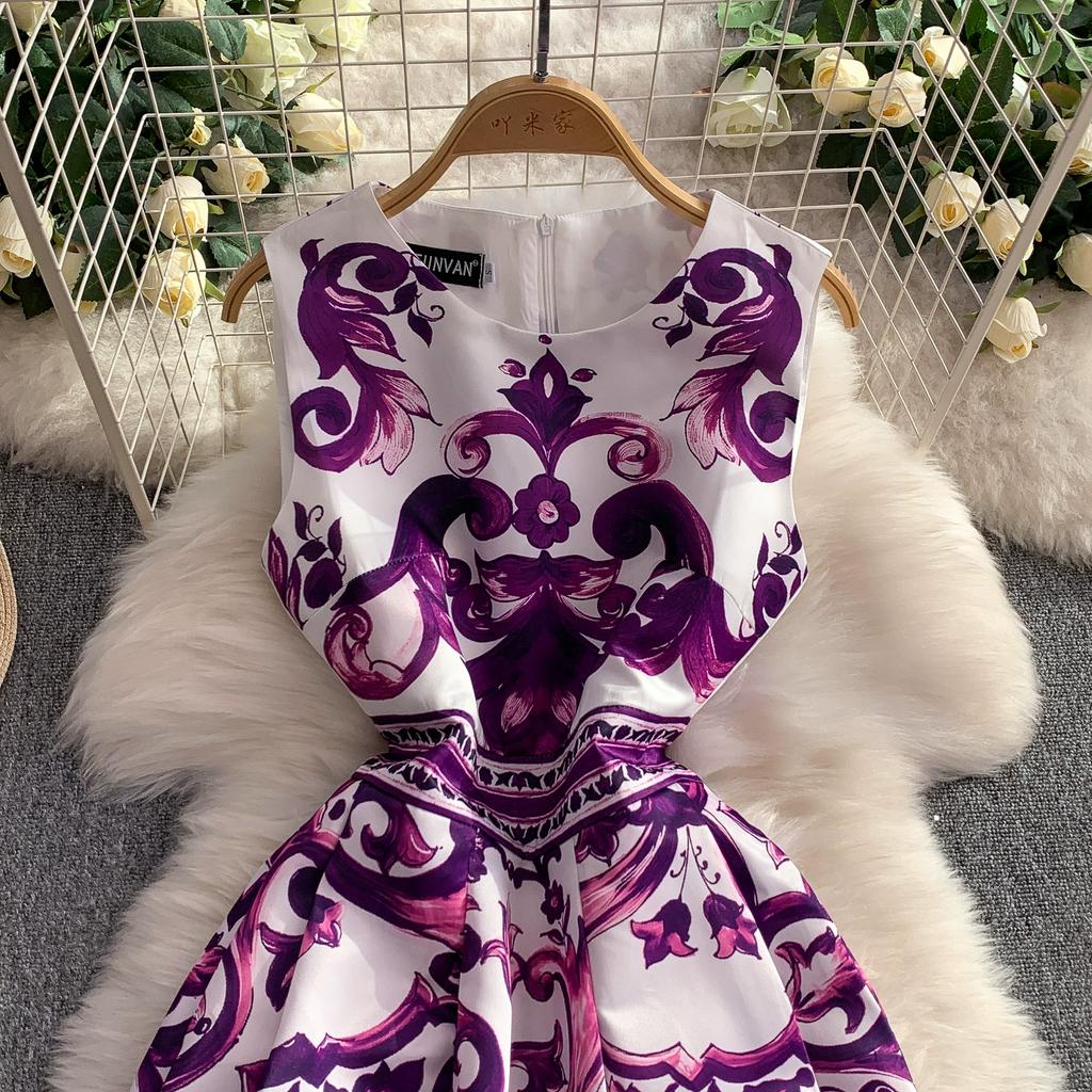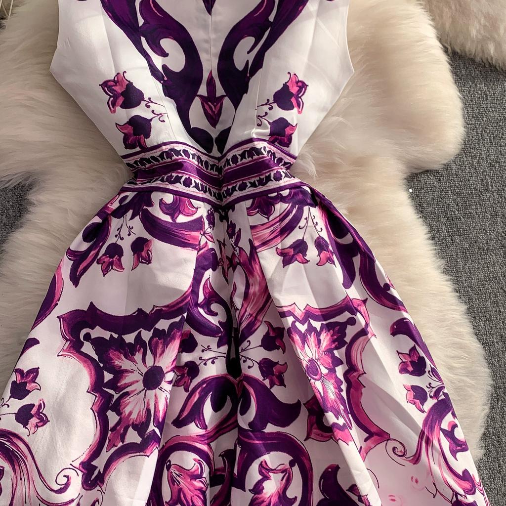 Летнее винтажное дизайнерское платье с принтом, сине-белый фарфор, подиумное, женская мода, без рукавов, майка, миди, вечерние платья