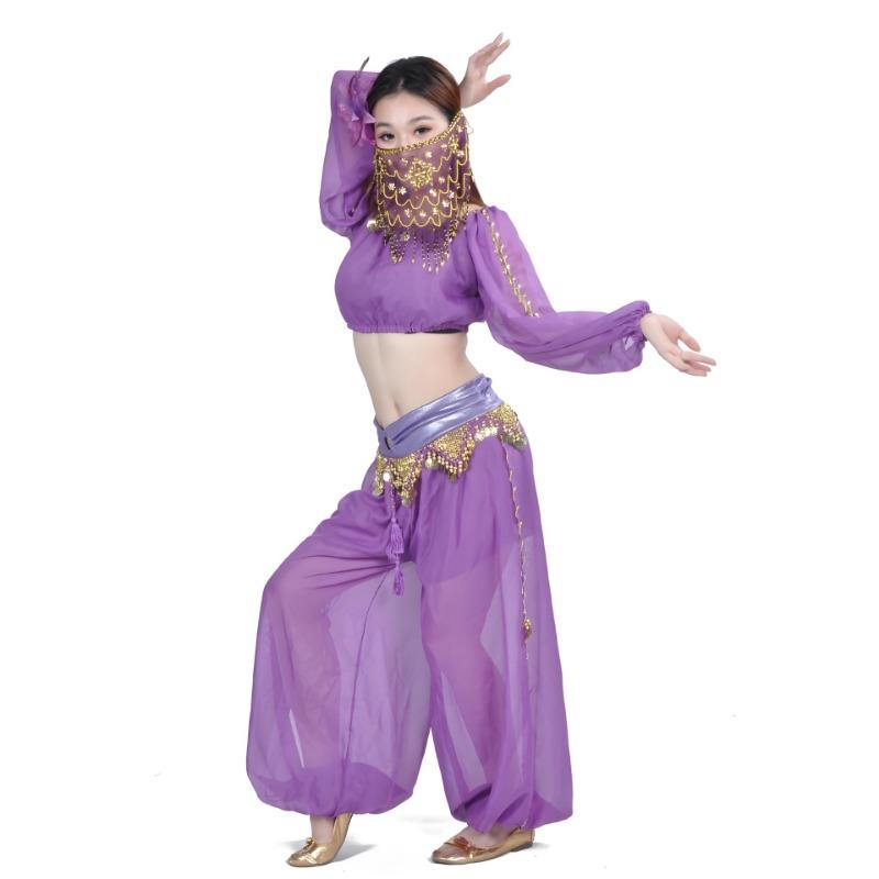 Комплект для танца живота Фонарь Длинный рукав Круглые брюки-фонари Практика Фестивальная активность Индийский танец Смотреть Выступление Костюмный набор