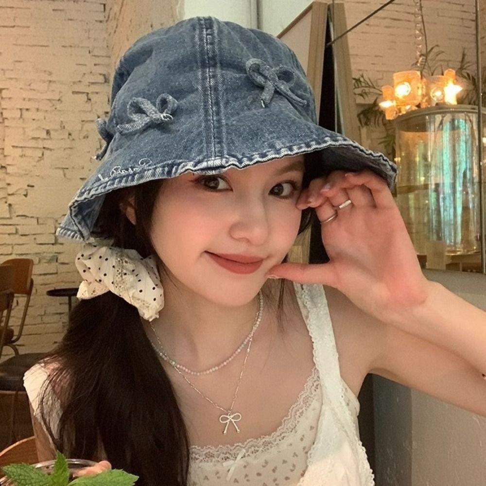 Korean Style Denim Bucket Hats Sweet Basin Caps for Men Fashion Sunscreen Hat Summer Spring
