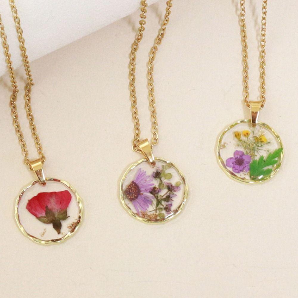Ожерелье с кулоном из смолы ручной работы, ожерелье с кулоном из прессованного цветка, ожерелье с кулоном из сушеного цветка, женское