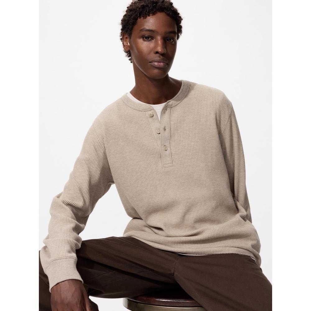 - Тип с вырезом хенли, отлично носить отдельно или слоями