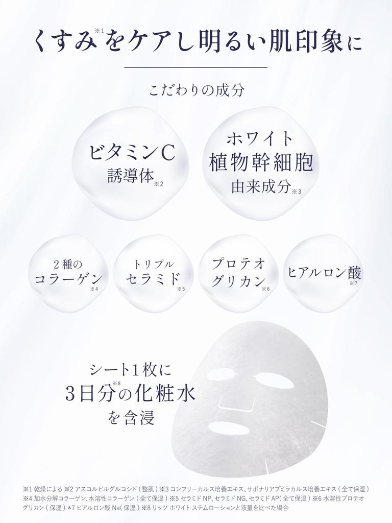 Ritz White Stem Perfect Большая маска для лица с производным витамина С, без отдушек, без красителей, объем, листы, упаковка,