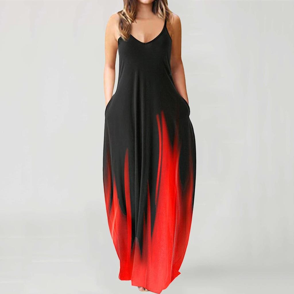 Женское повседневное длинное платье с принтом на шнуровке и градиентным рендерингом