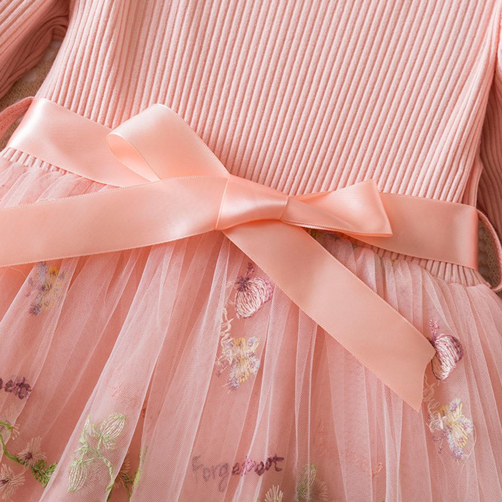 Девочки Мода Милое Платье Принцессы из Сетки с Цветочной Вышивкой с Длинным Рукавом Платья
