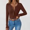Женская и зимняя футболка с тонким низом, модная повседневная однотонная футболка с U-образным вырезом, длинный рукав