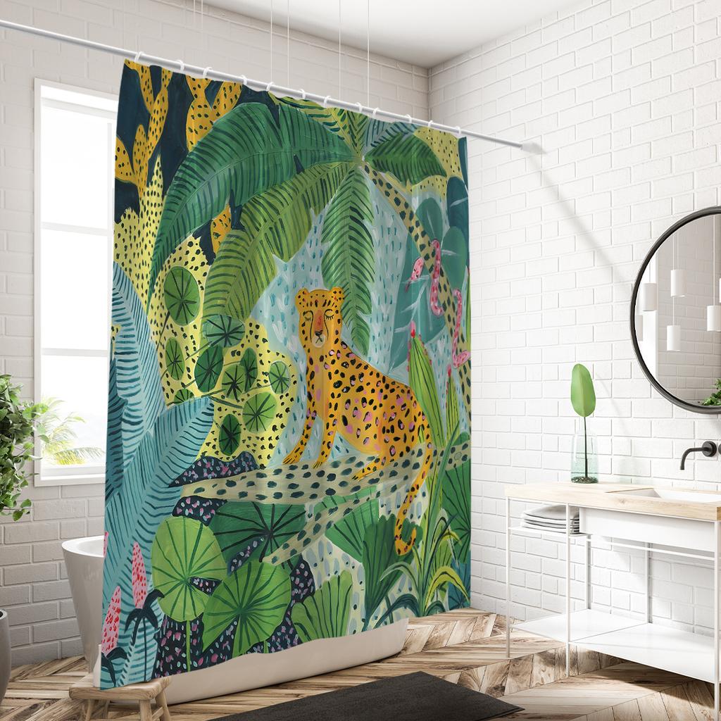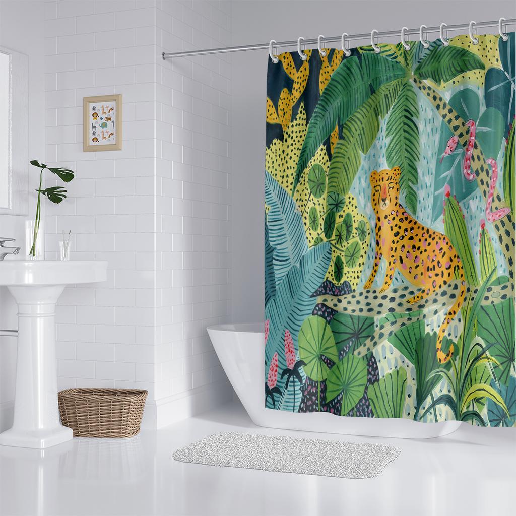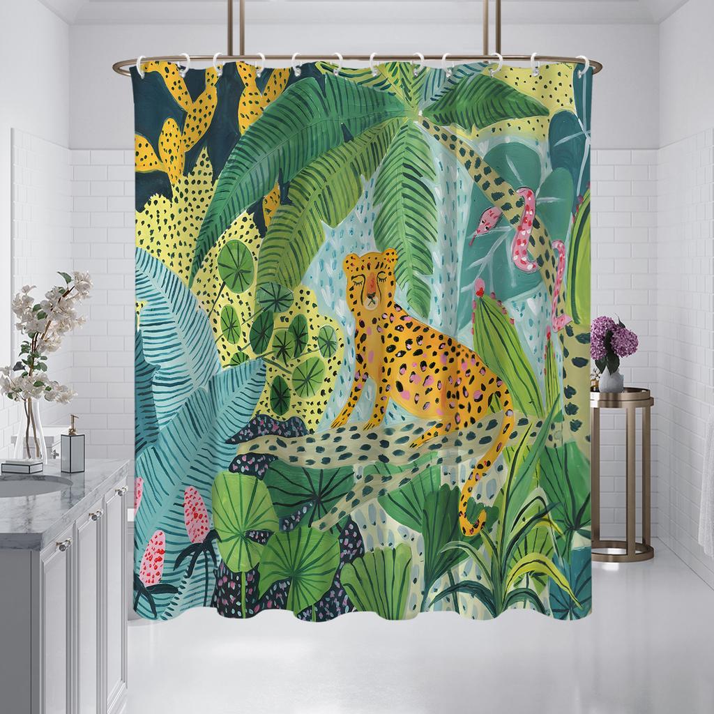 1 шт. Занавеска для душа с принтом «леопард в джунглях», водонепроницаемая, с 12 крючками, подходит для душа в ванной, для домашнего использования