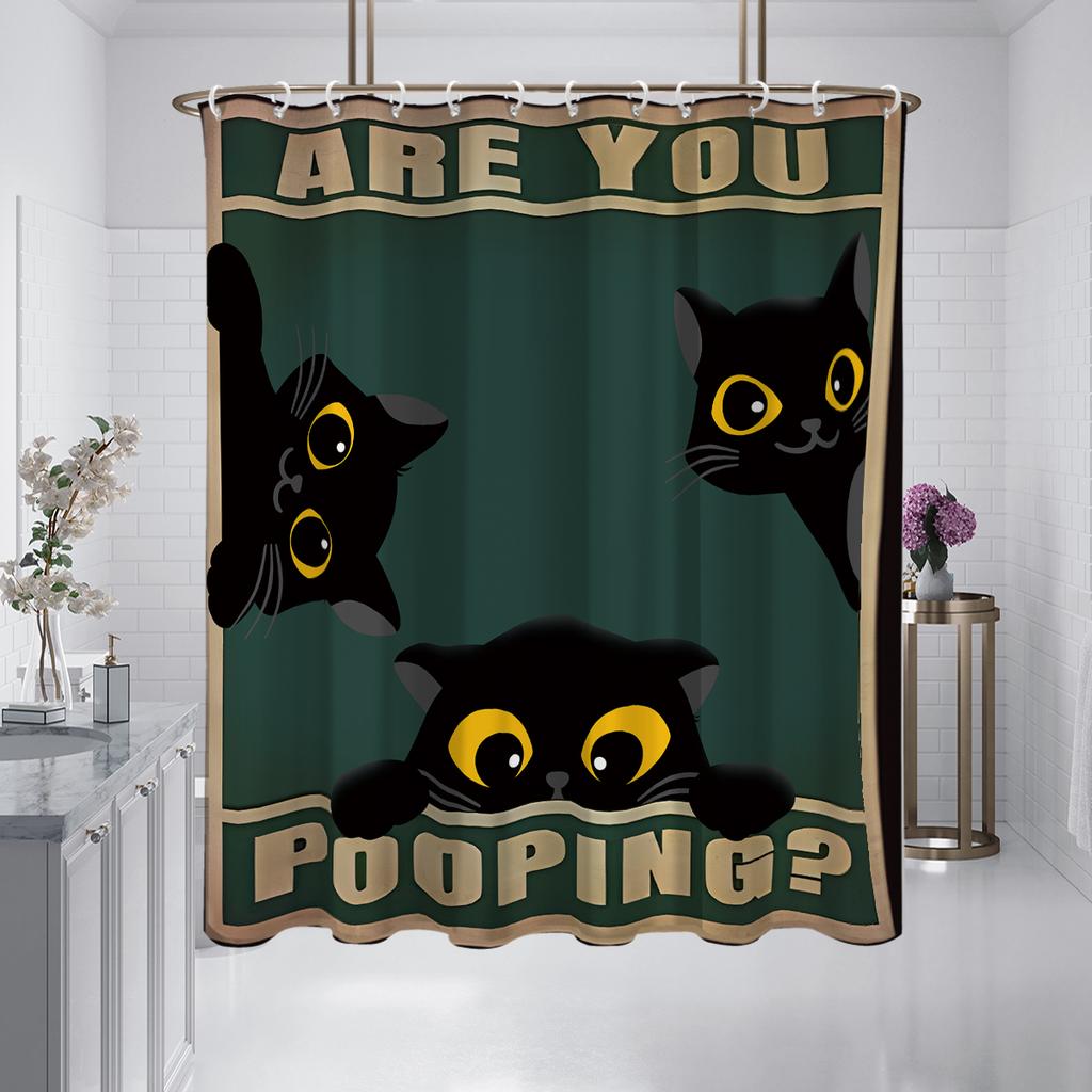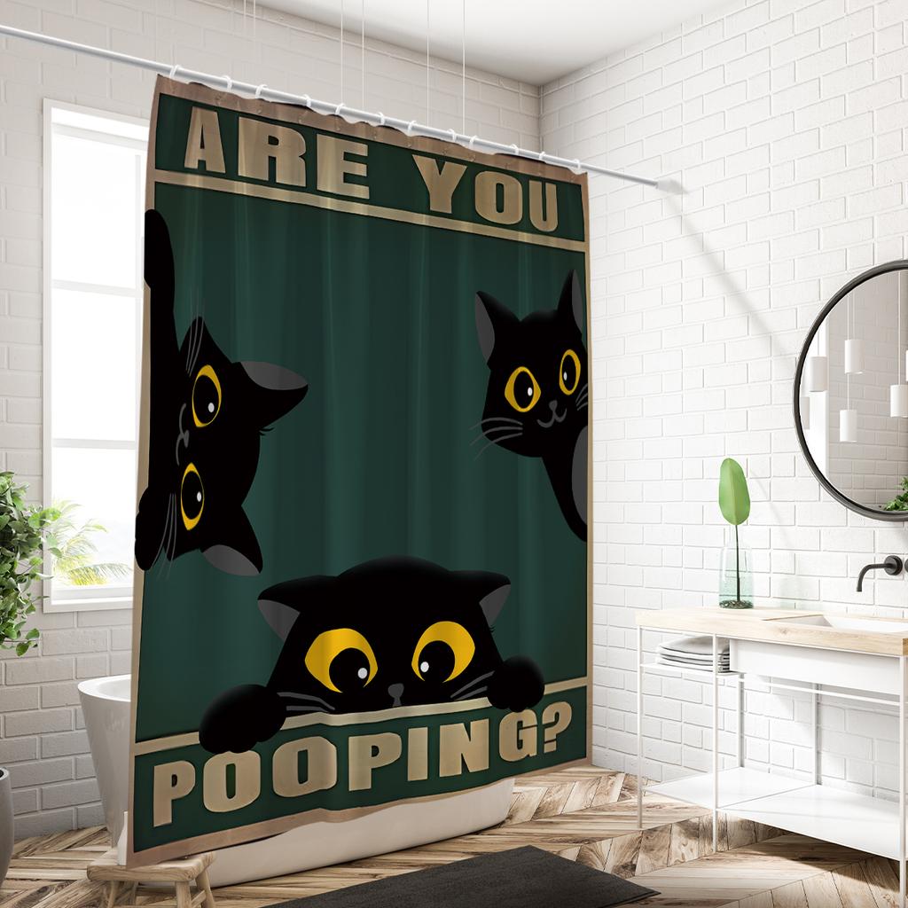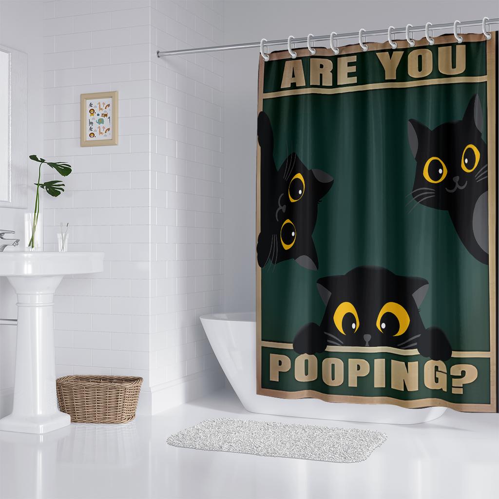 1 шт. милая занавеска для душа с принтом черного кота, водонепроницаемая, моющаяся, с 12 крючками, для ванной, душа, ванны, для дома