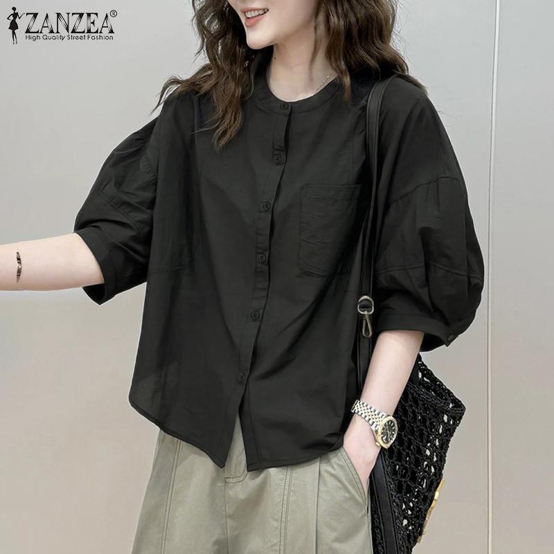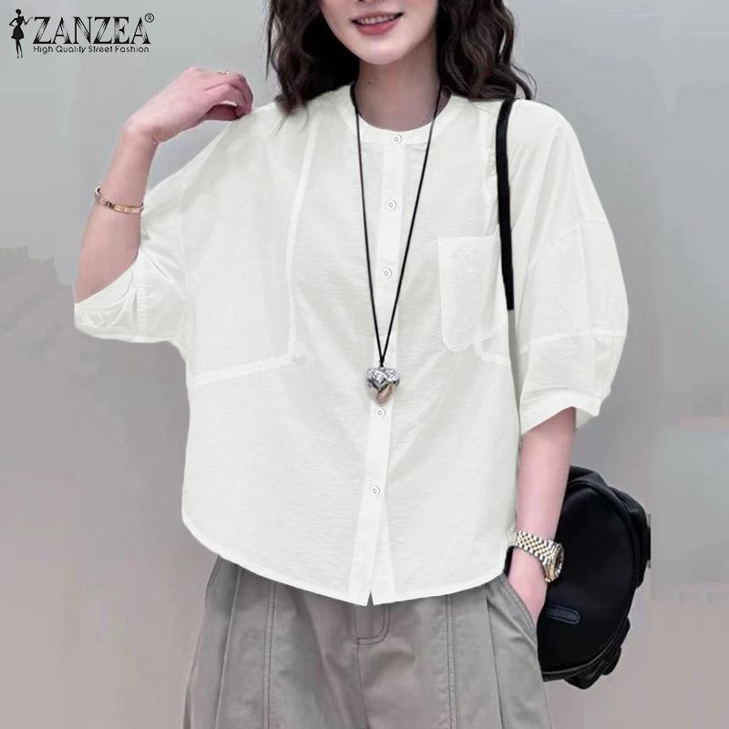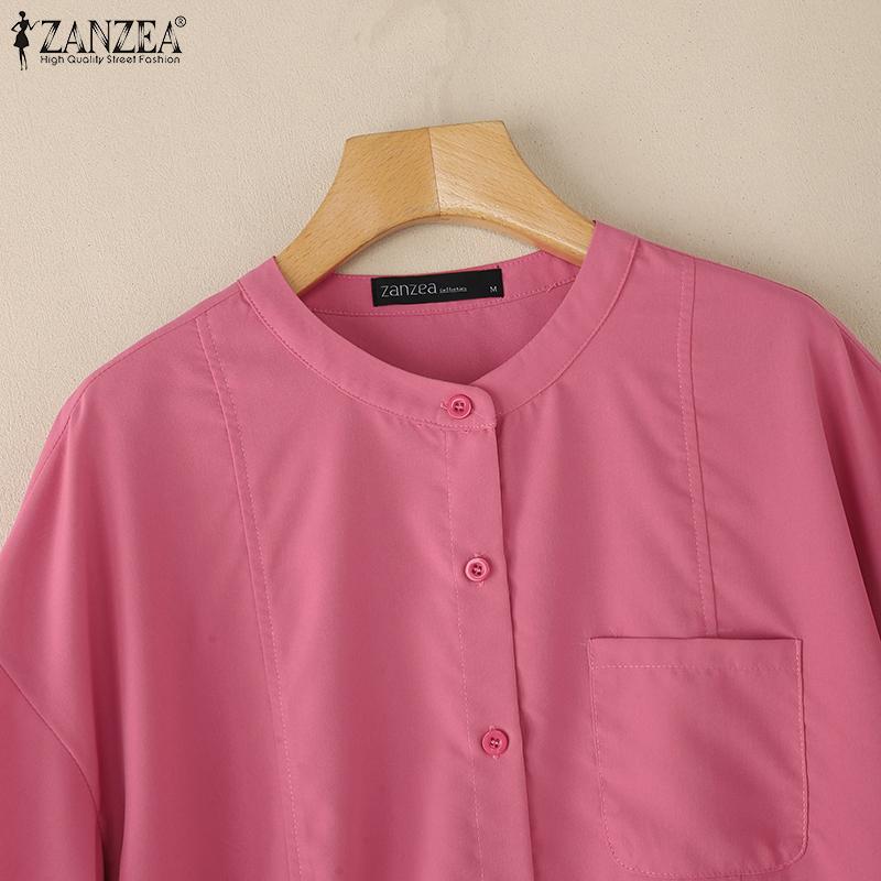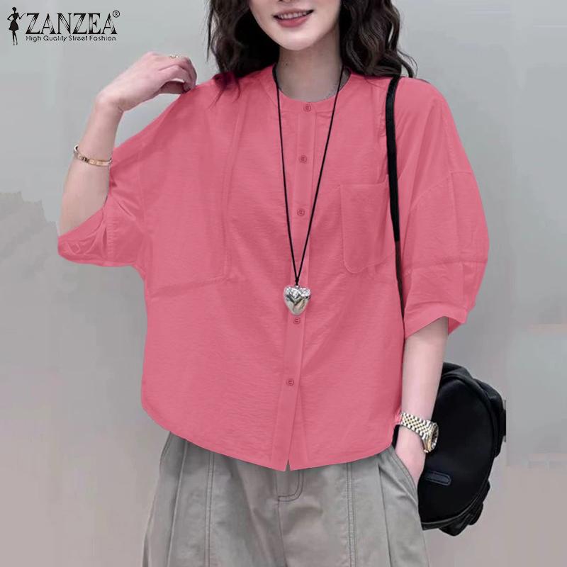 ZANZEA Женская повседневная блузка с круглым вырезом и рукавом 3/4