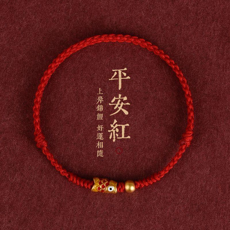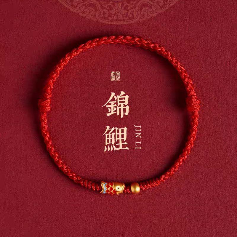 Браслет с карпами на удачу Этот год животного Красный шнурок Браслет на ногу Берег Прячущаяся Весна Браслет на ногу Мужской и женский Парный Детский подарок