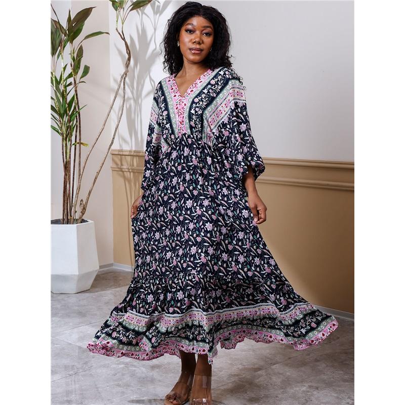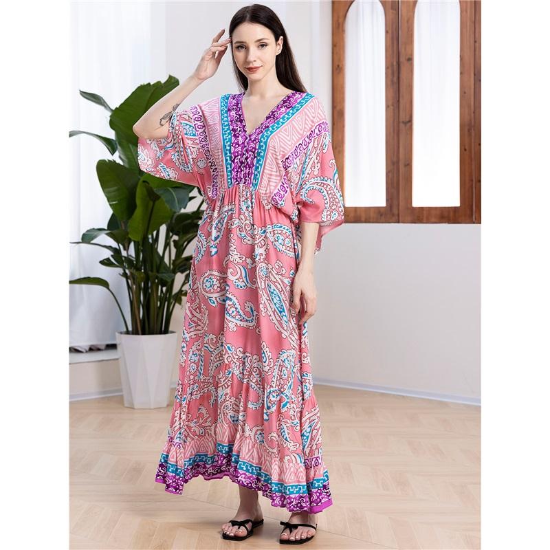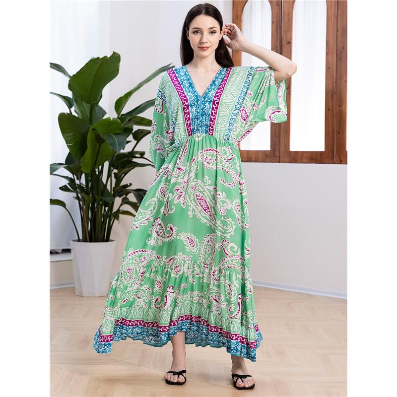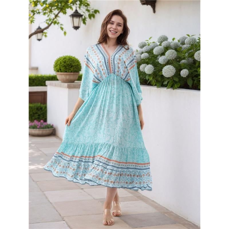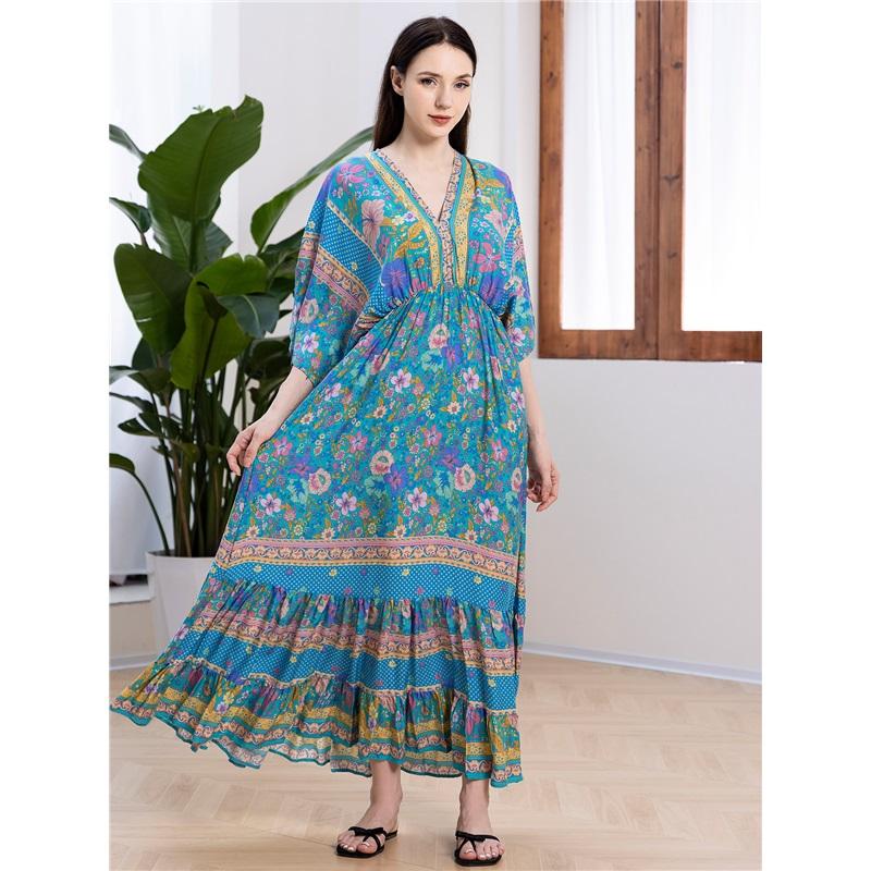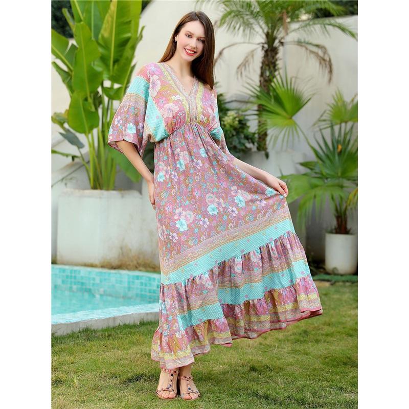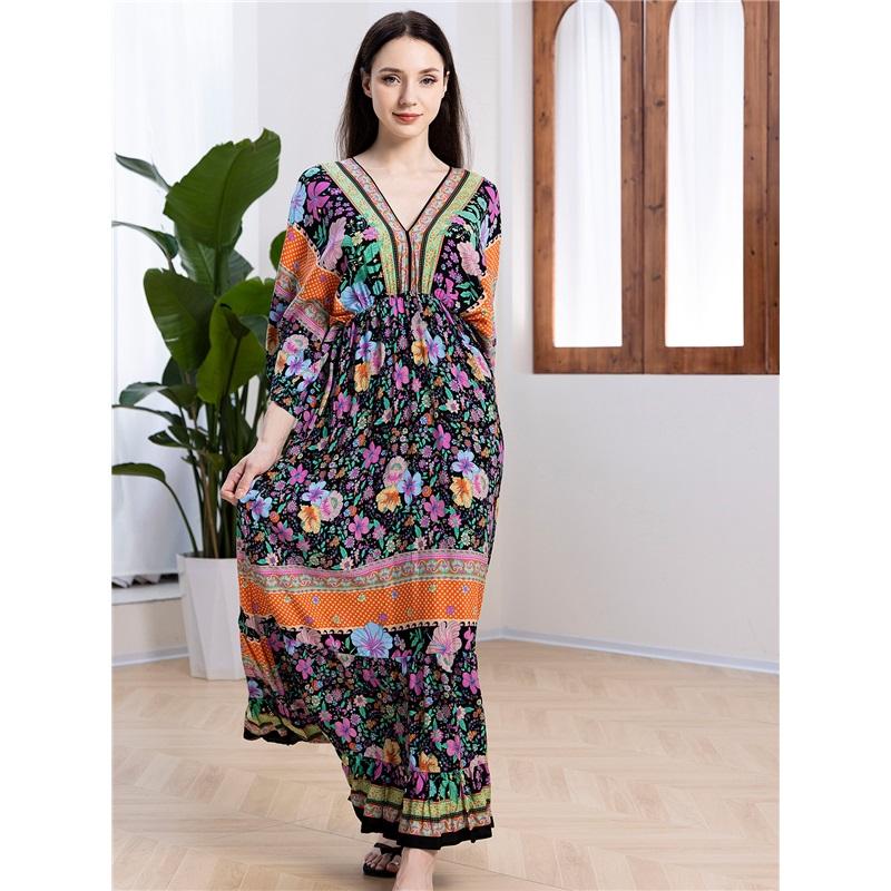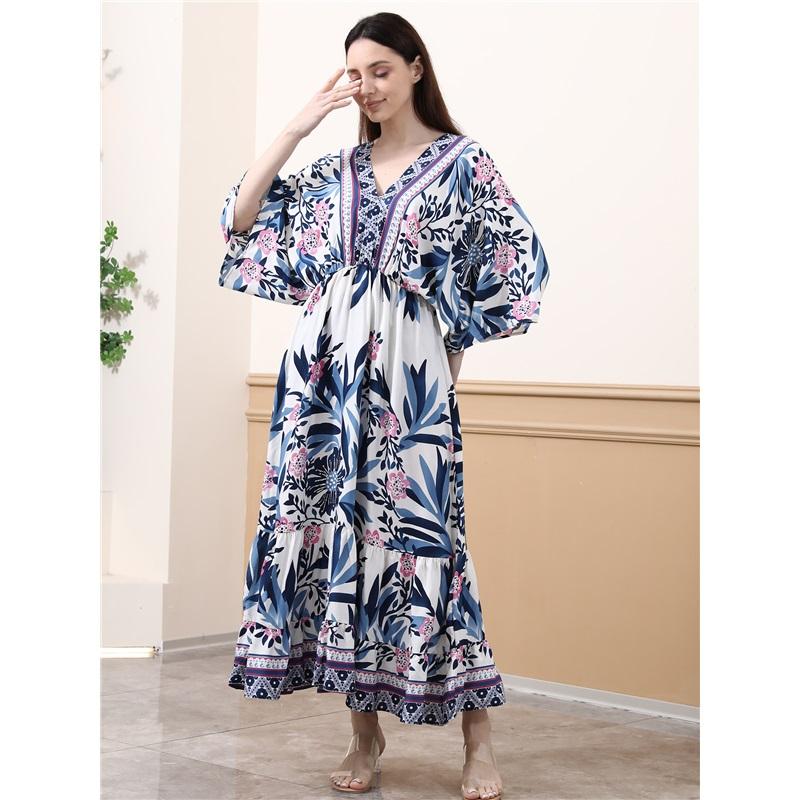 Европейское и американское летнее женское платье с цветочным принтом, свободное А-силуэта, с принтом, длинная юбка, пляжная блузка, праздничный стиль