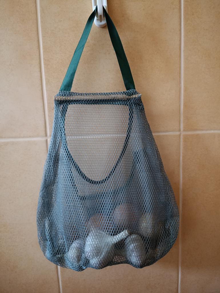 Хранить лук бывает очень непростой задачей. Доставка составила около двух недель. При транспортировке ничего не повредилось и мешок пришёл без брака. Мешок небольшой. Но вместительный. В нем удобно хранить лук, чеснок или любую кухонную утварь. Сетка мелкая. Поэтому мусор с овощей лететь не будет и продукты будут просыхать. Поэтому они не испортятся. Мешок хорошо прошит и сделан качественно. Вся конструкция продумана и надежна для хранения. Покупкой осталась довольна. В таком мешке будет удобно и детские игрушки складывать 😁 К приобретению рекомендую.