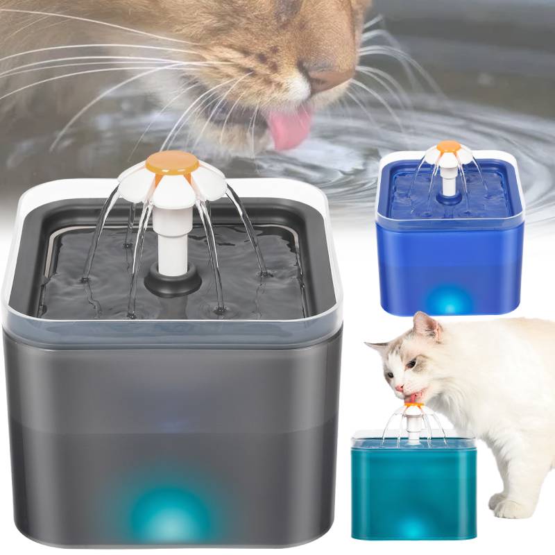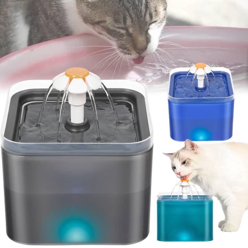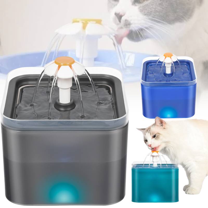 Вода 2л Фонтан для кошек Домашний питомец Собака Светодиодная питьевая миска Автоматический диспенсер Форма Куб