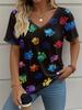 Летняя женская футболка с графическим принтом следов когтей животных, одежда для улицы с V-образным вырезом, модная футболка