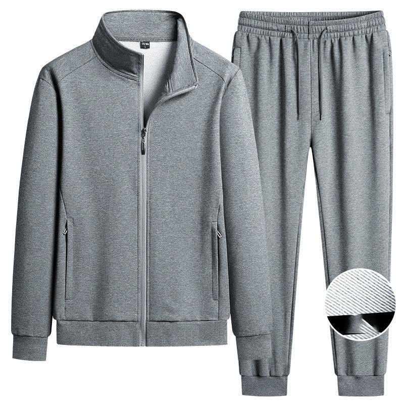 Весенне-осенний спортивный костюм из чистого хлопка с воротником-стойкой, тонкий повседневный для тренировок, мужская толстовка и брюки, комплект из двух предметов