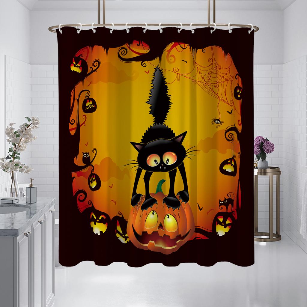 1 шт. 180x180 см оранжевая тыква черный кот принт Хэллоуин занавеска для душа перегородка ванная комната водонепроницаемая и устойчивая к плесени