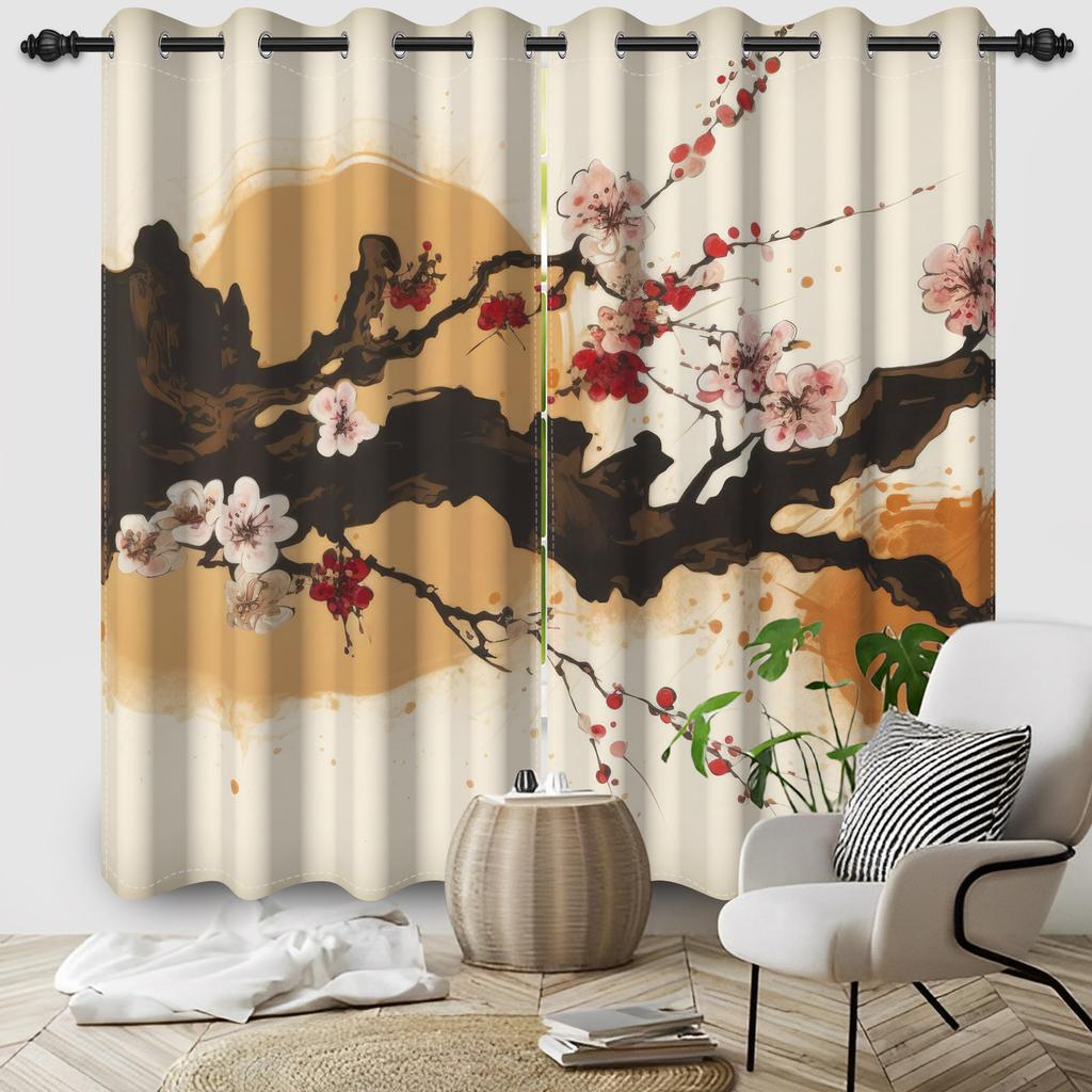 2 шт./Набор Занавеска для окна с цветущей сакурой Японский пейзаж Гора Фудзи Солнце Спальня Гостиная Полиэстер Блэкаут Звукоизоляционная занавеска