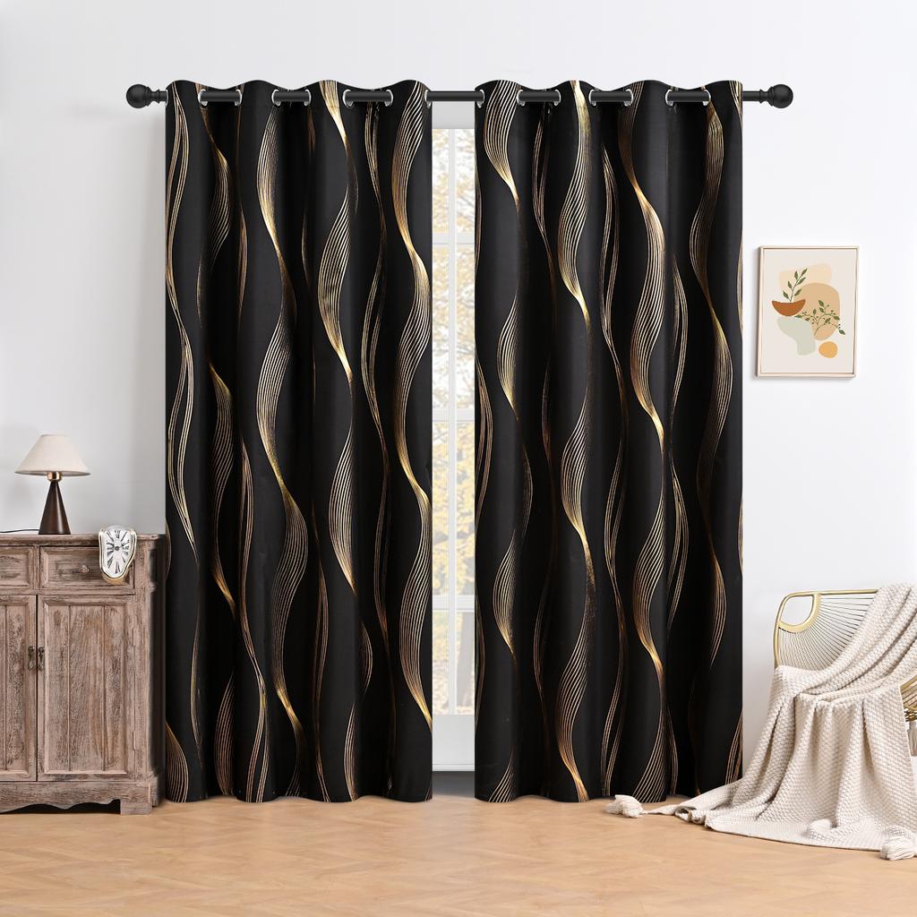 1 шт. штора с полным затемнением, с перфорацией и рисунком волны, выполненным горячим тиснением, подходит для гостиничных спален и гостиных.