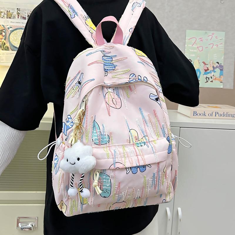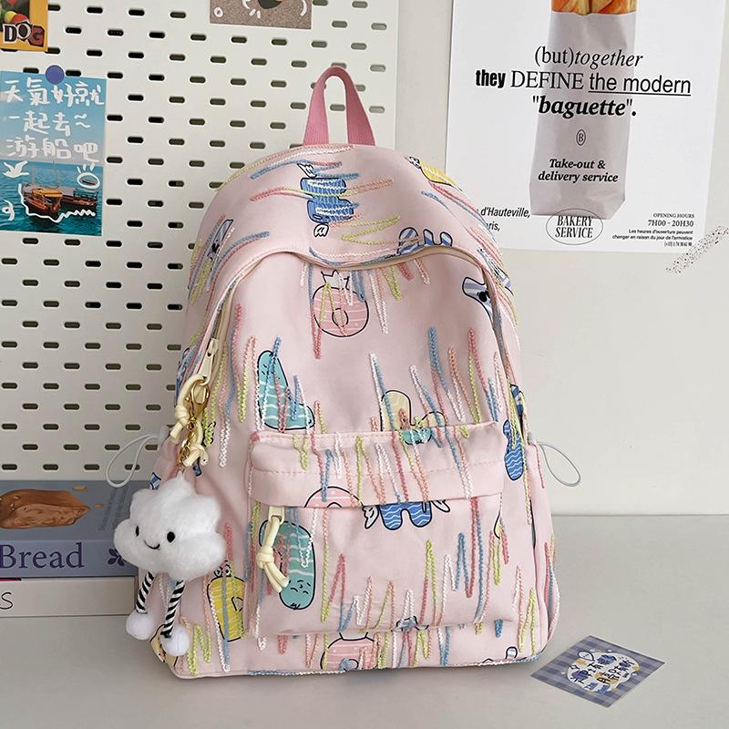 Школьный рюкзак Девочки Высокая ценность Инс Ветер Большая вместимость Ученики средней школы Простой и милый Кампусный рюкзак.