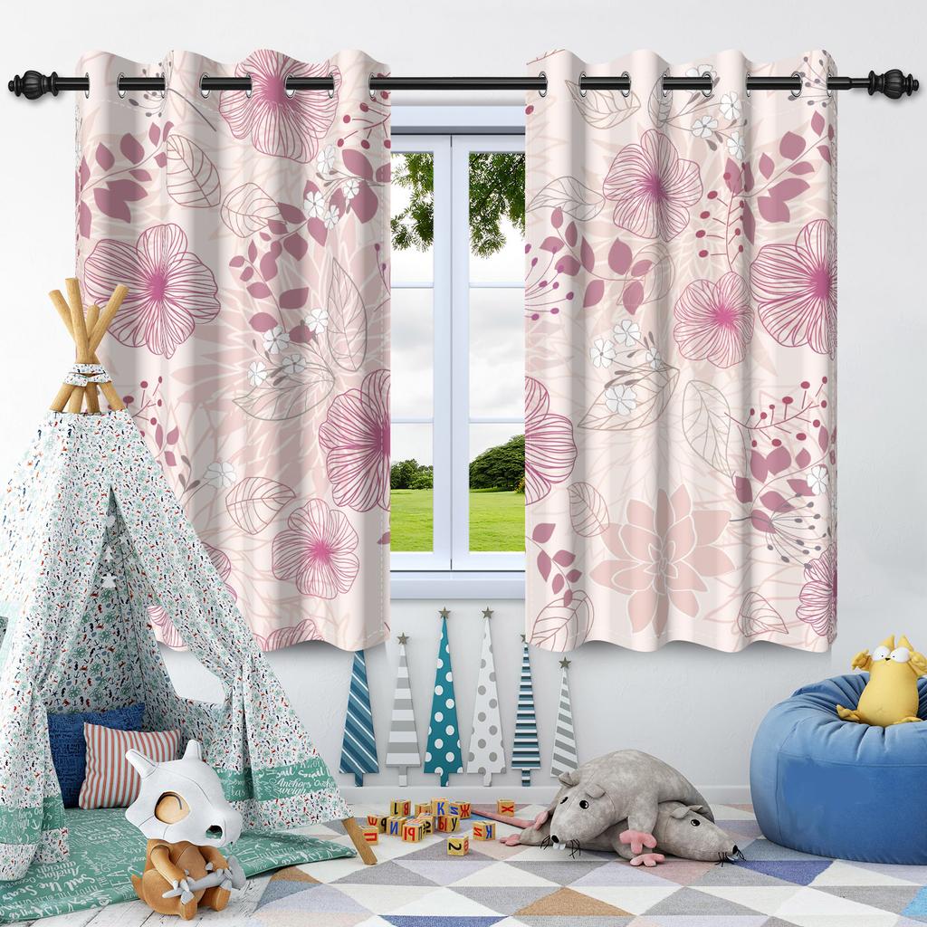 2 шт. Шторы с живыми цветами для окон, Детская спальня, Гостиная, Квартира, Для помещений и улицы, Теплоизолирующие шторы-блэкаут