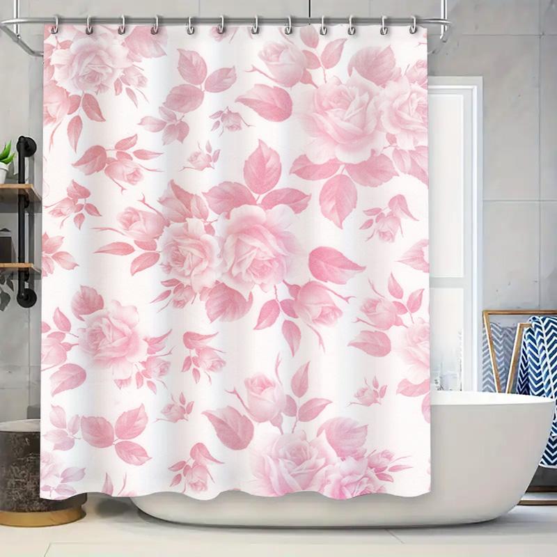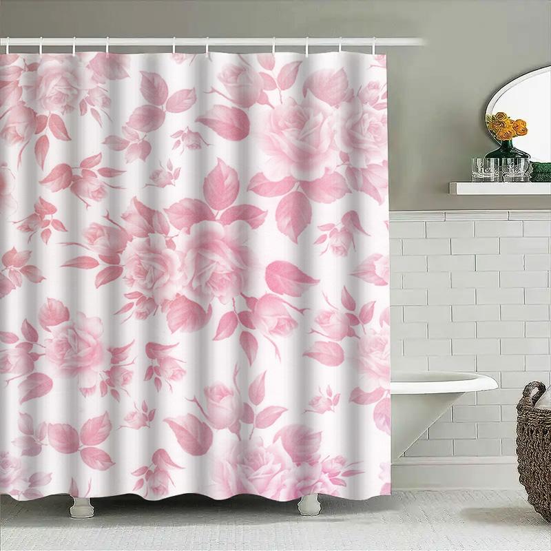 Розовая Цветочная Занавеска для Душа Мягкая Водонепроницаемая Ткань для Декора Ванной Комнаты Доступна в Различных Размерах