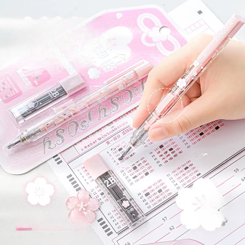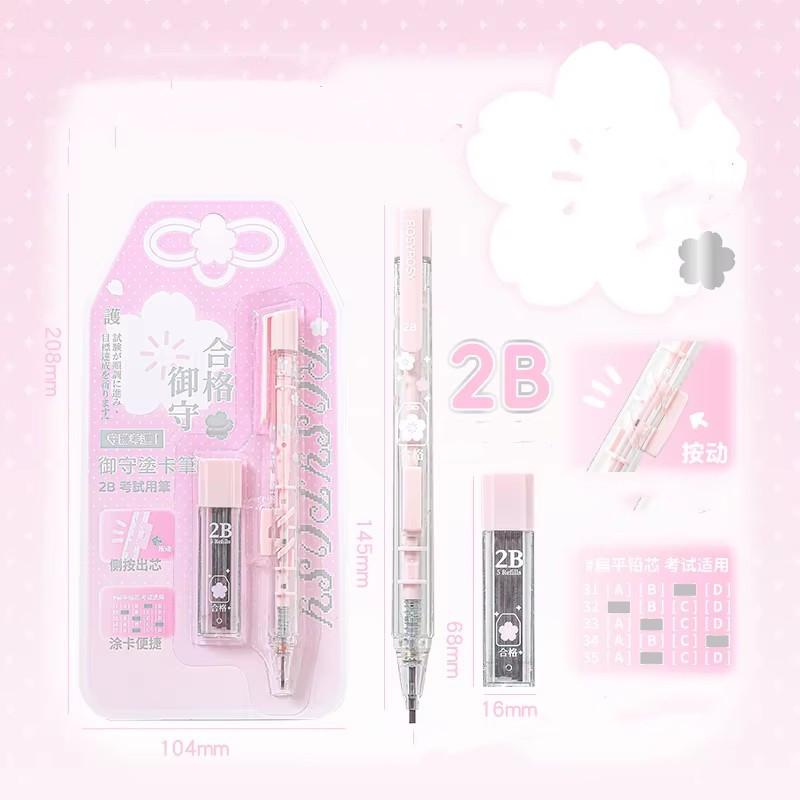 Набор карандашей-амулетов на удачу для экзаменов Каваи Ретро Японские механические карандаши 2B для подготовки к тестам со стержнями Студенческие письменные принадлежности