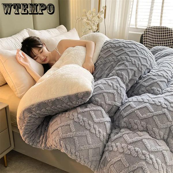 WTEMPO Складные одеяла из овечьей шерсти Теплые Двусторонние Плюшевые Толстые Зимние Одеяла Однотонные Домашние Кроватные и Студенческие Общежития Двуспальные и Односпальные Матрасы