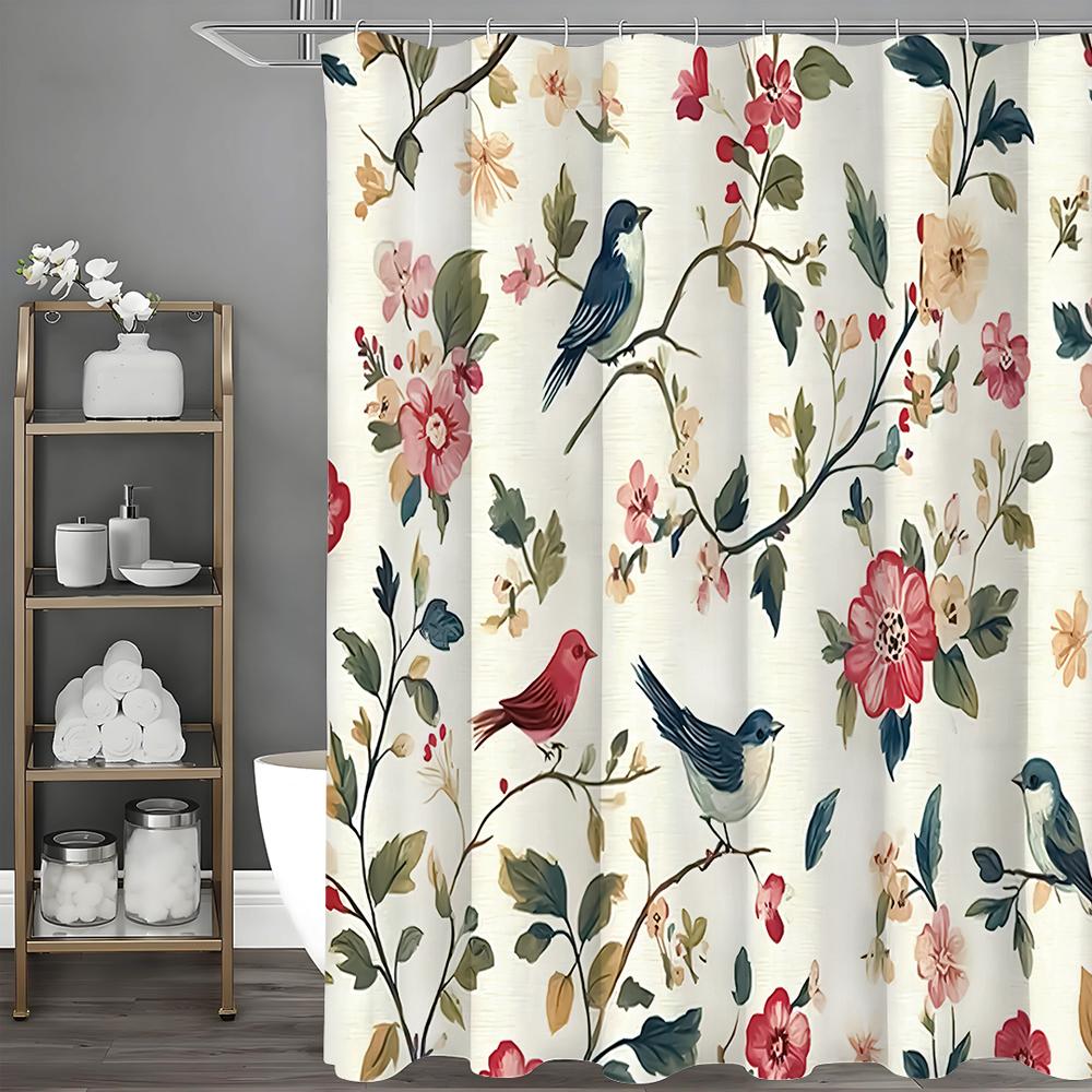 Цветочная шторка для душа с птицами, Декоративная шторка для душа для ванной, Водонепроницаемая шторка для душа с крючками