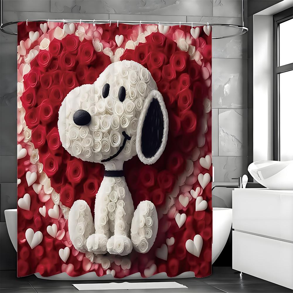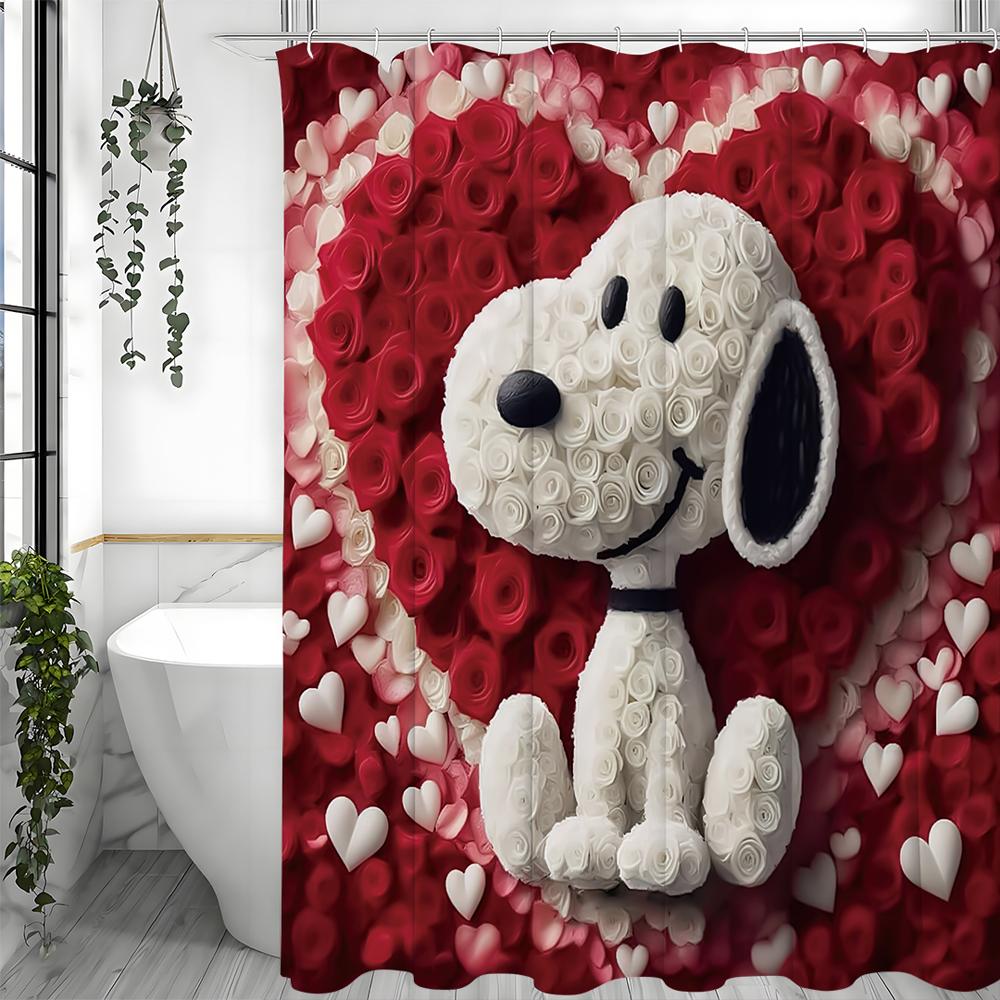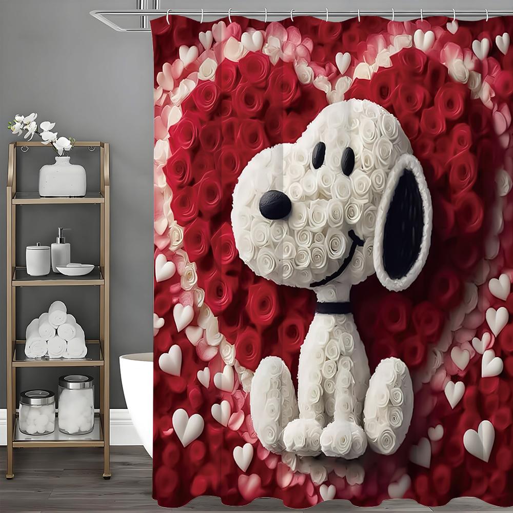 День святого Валентина Милый щенок Красная и белая роза Занавеска для душа, Декоративная занавеска для душа для ванной комнаты, Водонепроницаемая занавеска для душа с
