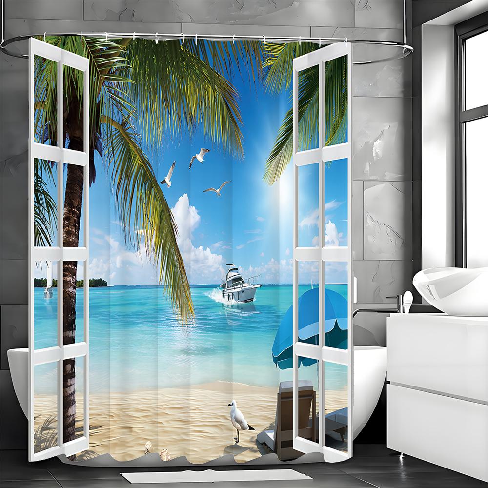 Занавеска для душа Ocean Beach Window Seagull Ship, Декоративная занавеска для душа для ванной комнаты, Водонепроницаемая занавеска для душа с крючками