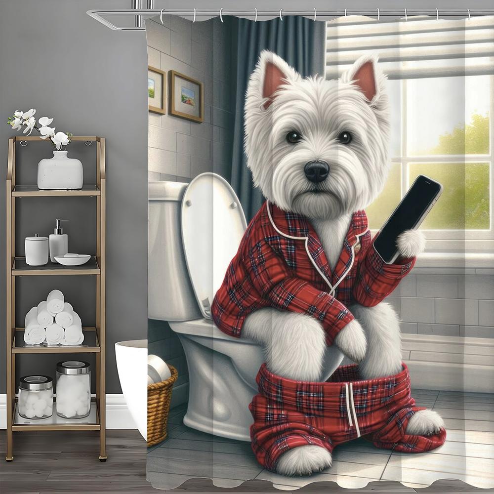 Милая собака, сидящая на унитазе и играющая с мобильным телефоном, забавная шторка для душа, декоративная шторка для ванной, водонепроницаемая Ш