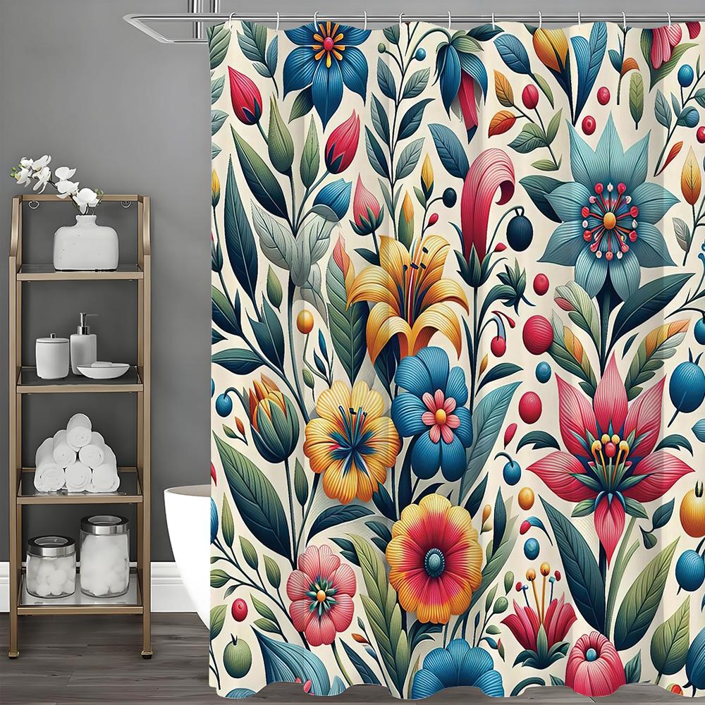 Весенняя красочная цветочная занавеска для душа с листьями, декоративная занавеска для душа для ванной комнаты, водонепроницаемая занавеска для душа с крючками