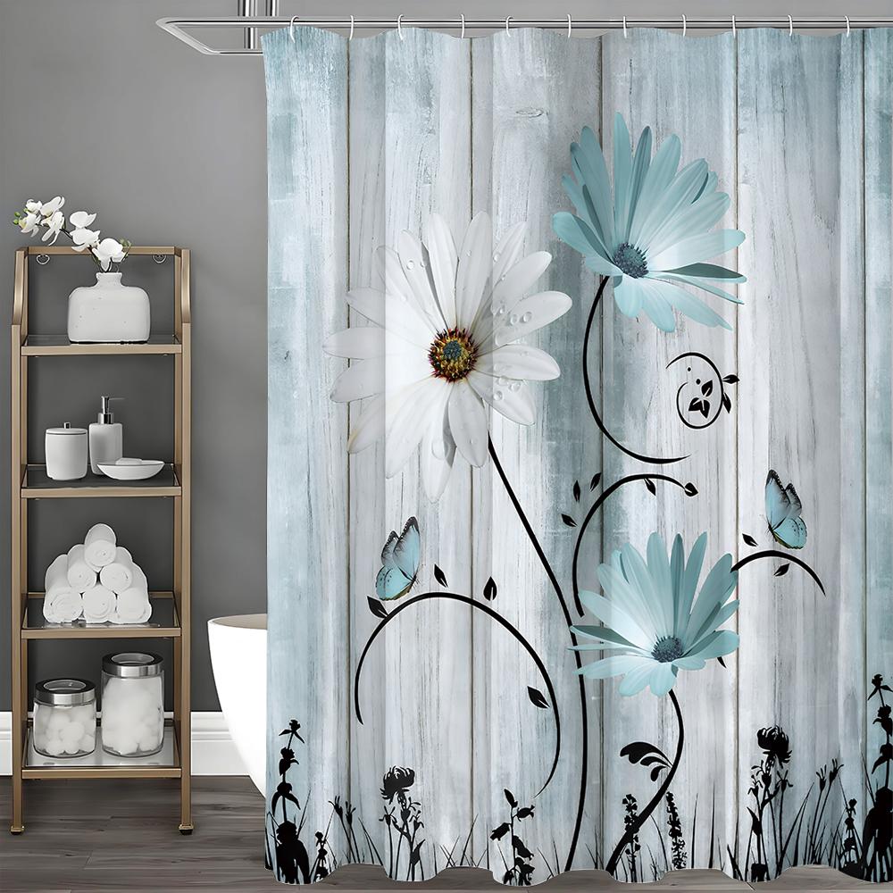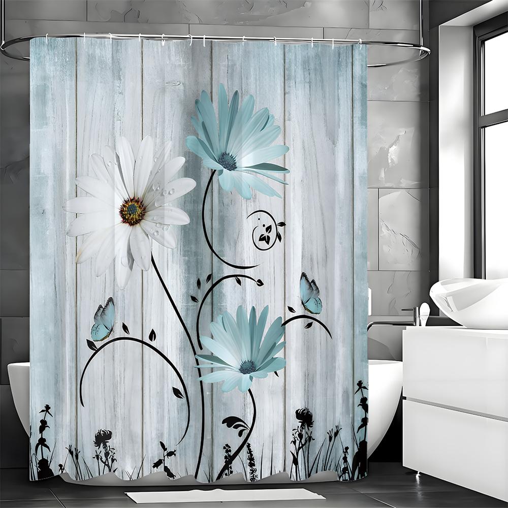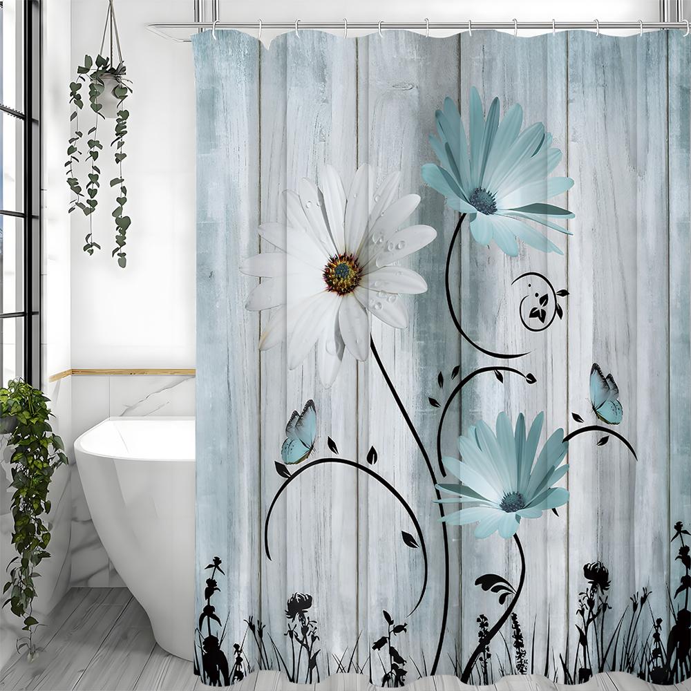 Сине-белая ромашка, бабочка, деревянная панель, шторка для душа, декоративная шторка для ванной, водонепроницаемая шторка для душа с